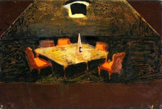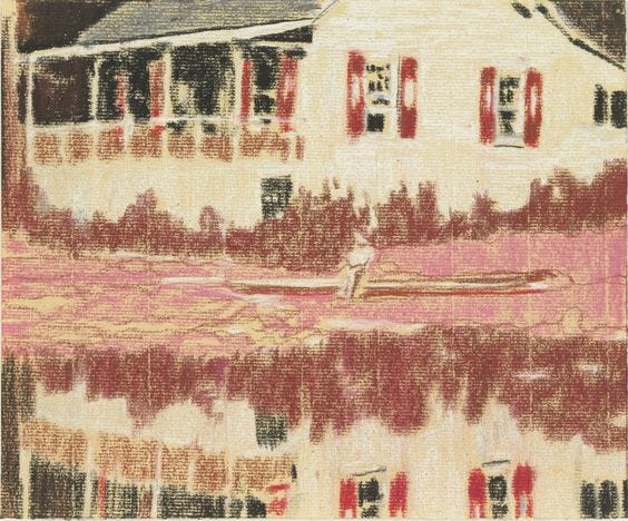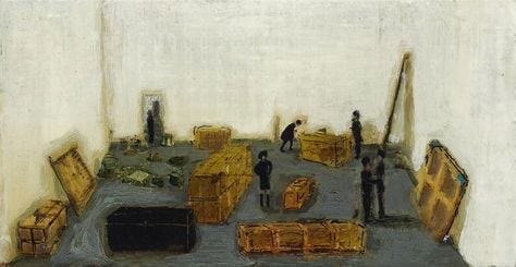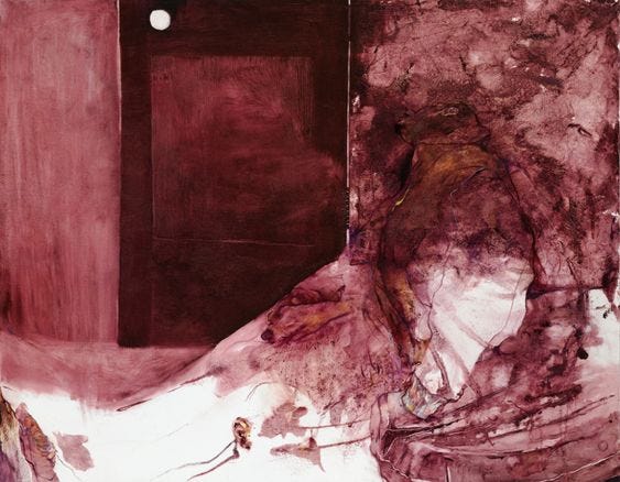Lately the only way I can relax is if I sit with my heating pad against my back and go down a contemporary painting rabbit hole on Pinterest. (Sorry to my seminar professor.) Today I’m on the hunt for artists who know how to step between realities. I want to see paintings I could live in forever. Probably, this craving is made more intense by the highly disorganized transitional state I am existing within today.