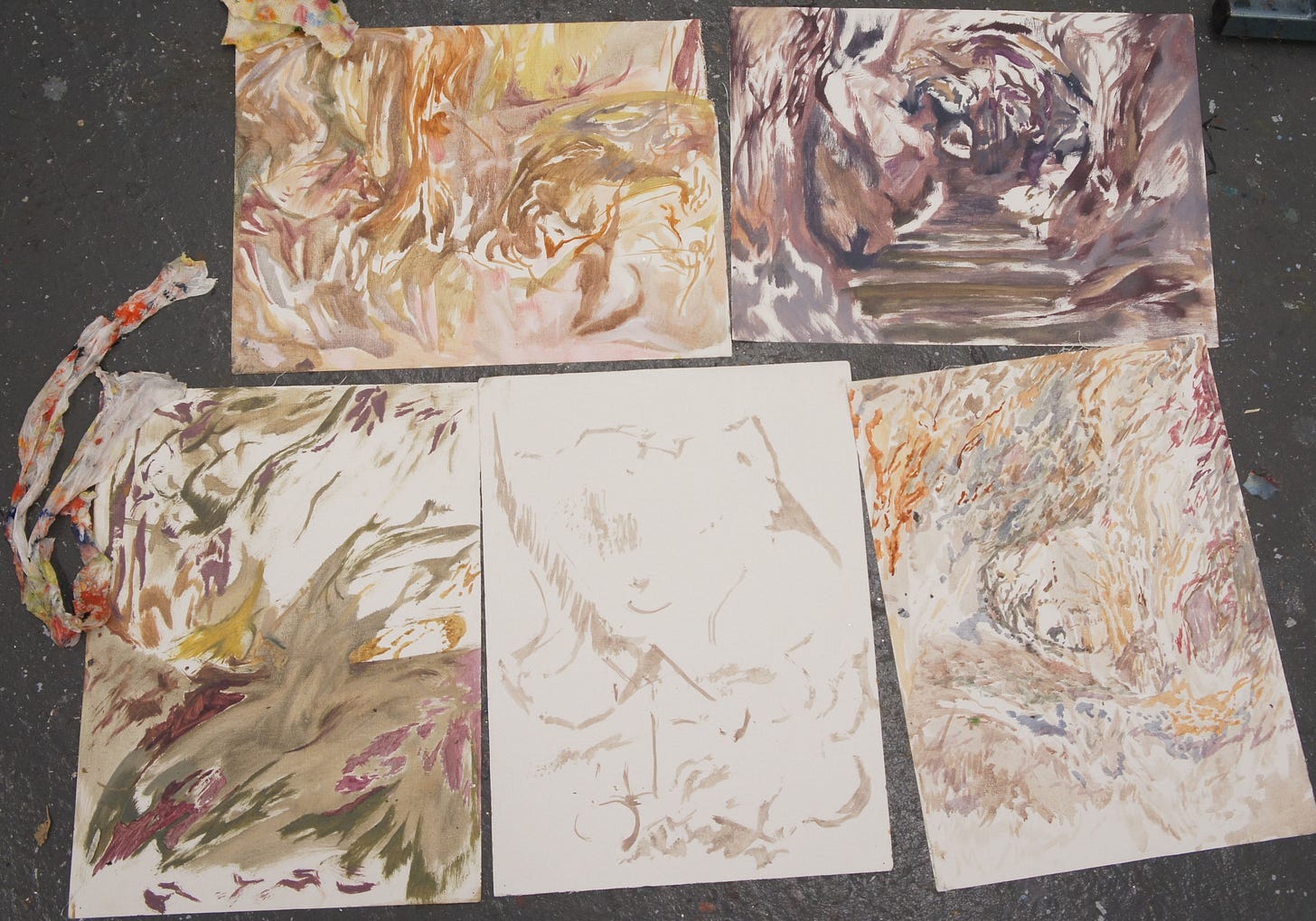 I just finished a big painting of some dreams. Here it is with some supplemental studies. Sorry about the trash…